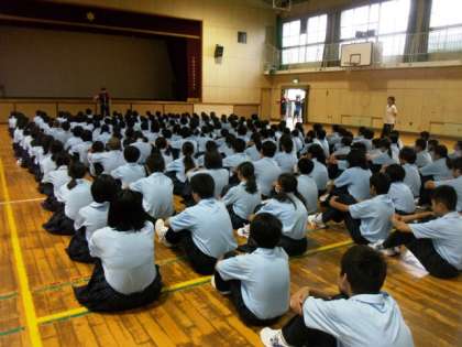1年生 学年集会 持ち物など日常生活の講話がありました。