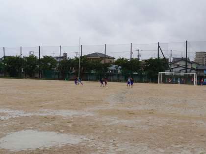 グラウンド状態が悪いですが、臆することなく、元気良く取り組んでいます。何事も楽しむ気持ちが大事です。