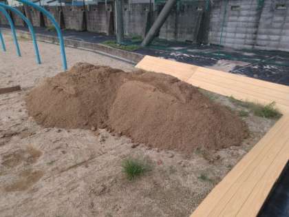 グラウンドの山土が補給されています。