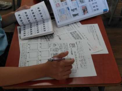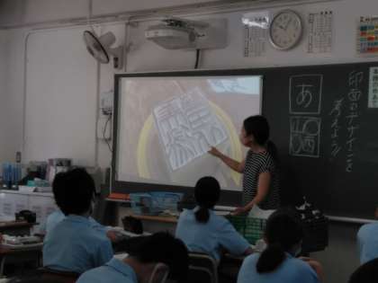 3年生の「てん刻」の授業です。てん刻は、いん章を削って作成します。