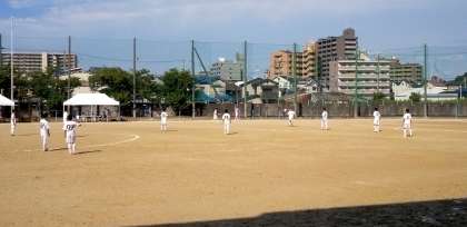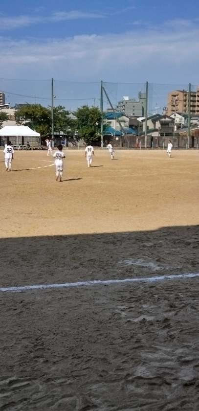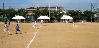 グラウンド状態は悪い中、サッカー部の練習試合が行われます。