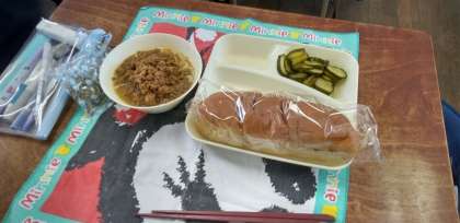 本日のメニューは、「挽き肉たっぷりタンタン麺」「きゅうりの甘酢づけ」「ミニフィッシュ」に発酵乳です!