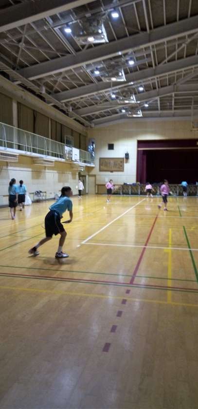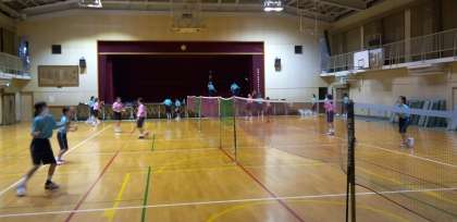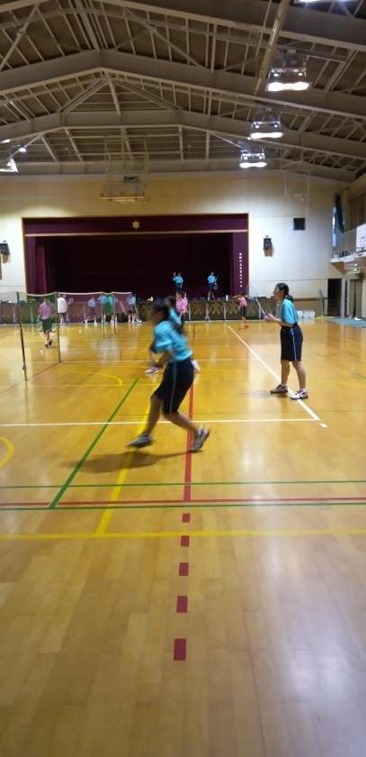 体育館では、バドミントン部が練習しています。