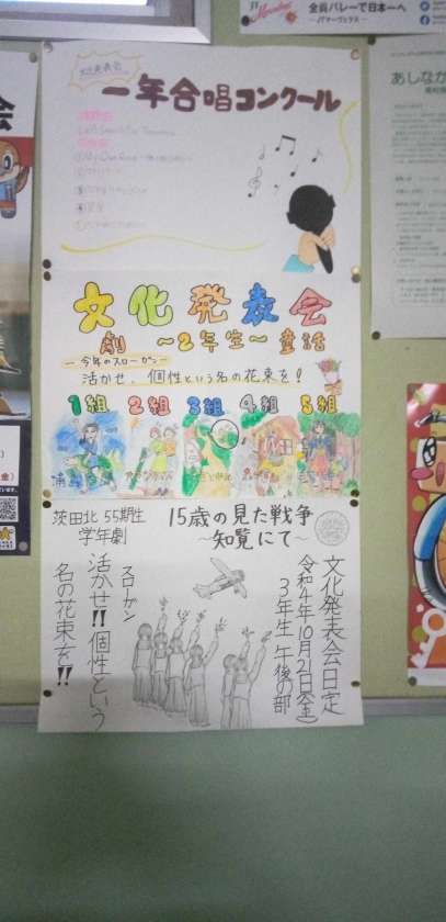 生徒作の学年別ポスターが掲示され、雰囲気が盛り上がって来ました!