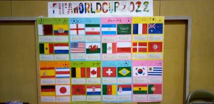 みんなで協力し、サッカーワールドカップ出場国の国旗を作成しました。