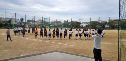 グラウンドでは、2ブロックのソフトボール部が集まり、試合が行われます。