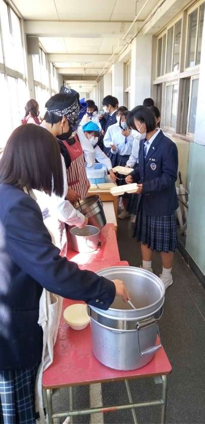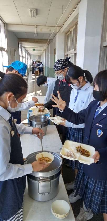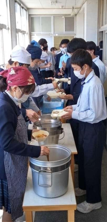 午前中の授業、テストが終了し、給食の準備に入りました。