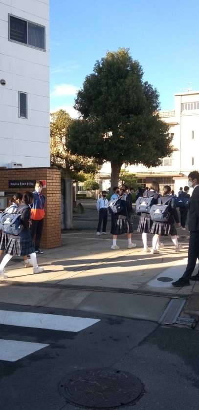 快晴のもと、生徒たちが元気に登校して来ました!