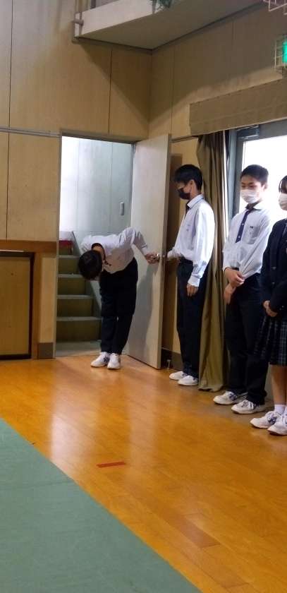 見本を示してもらったあと、代表生徒がチャレンジしました。