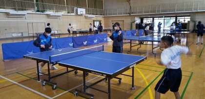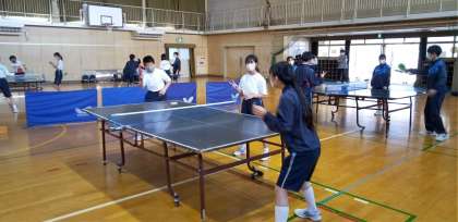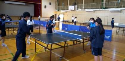 体育館では、卓球部が練習しています。