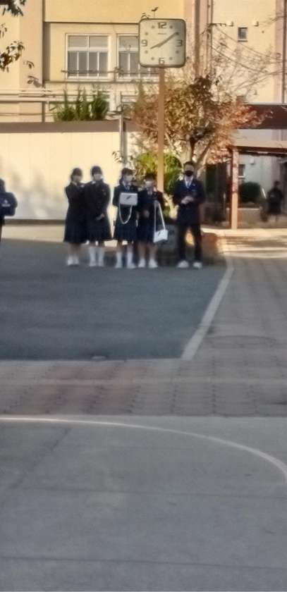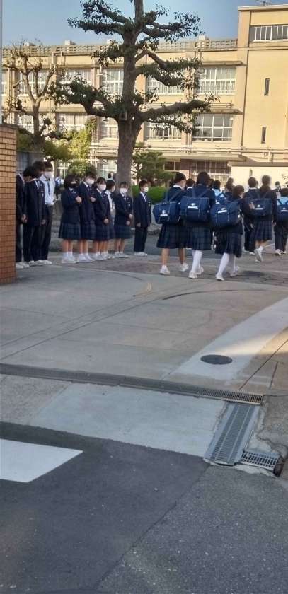 快晴の中、生徒たちが元気に登校して来ました。