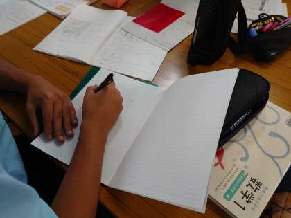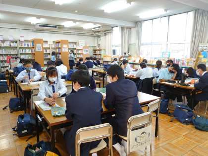 学校元気アップ事業の取り組みで、図書室で学習会を行っています。