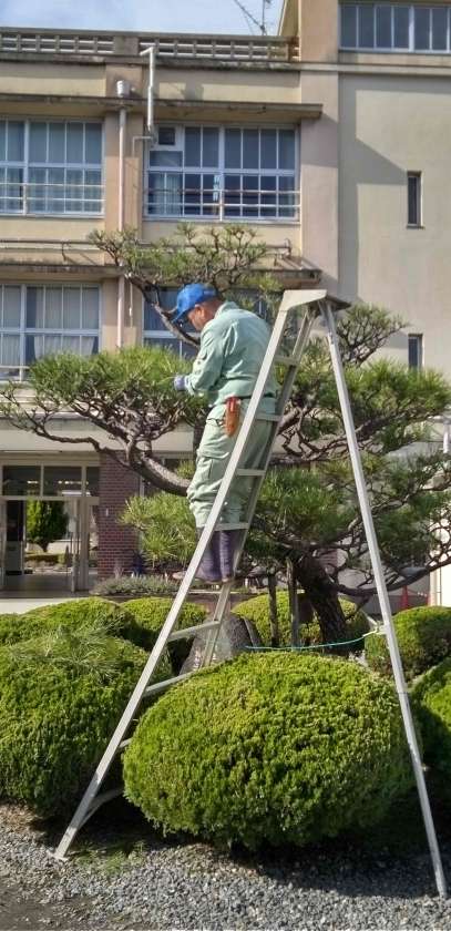 ポカポカ陽気の中、管理作業員さんが樹木の剪定を行ってくださっています。