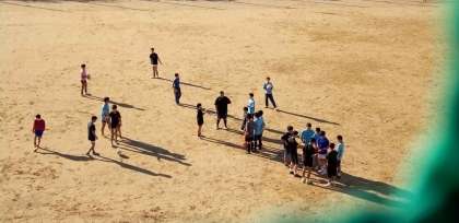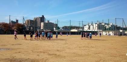 グラウンドの中央では、ラグビー部が練習を始めました。