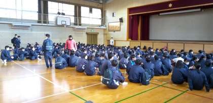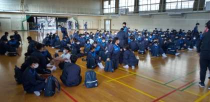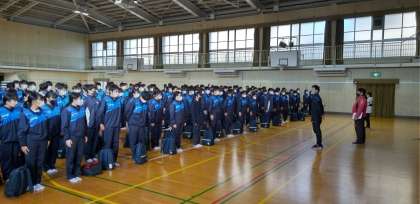 3年校外学習の出発式。