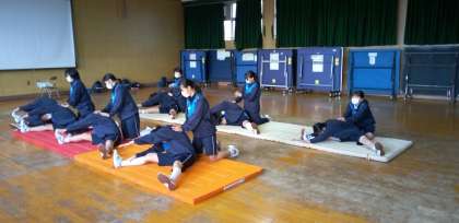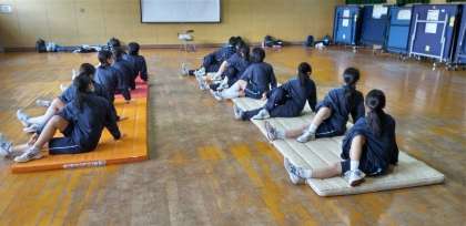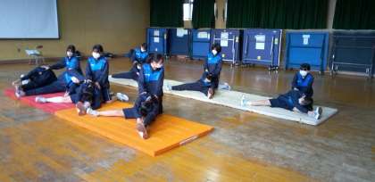 女子体育はマット運動。