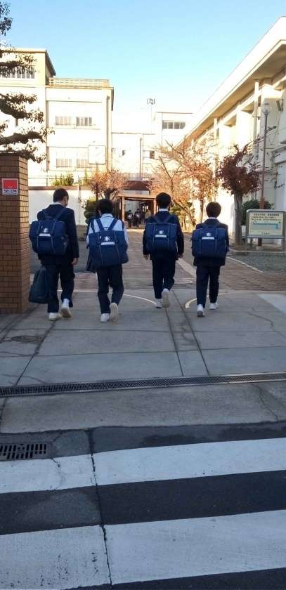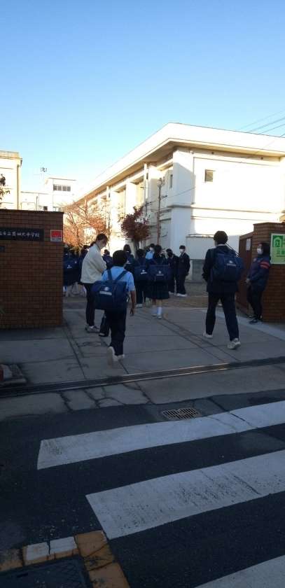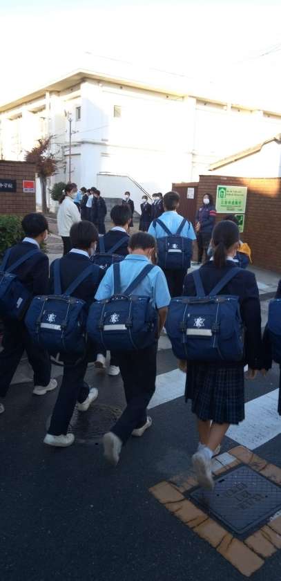 朝は空気が冷たいですが、まだ半袖シャツの生徒もいます!