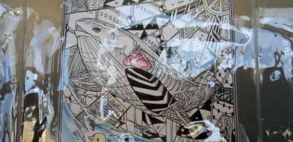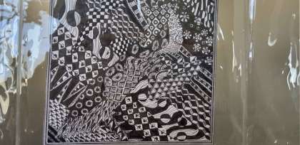 繊細な直線と曲線のからみ、白と黒、そして色づけ。