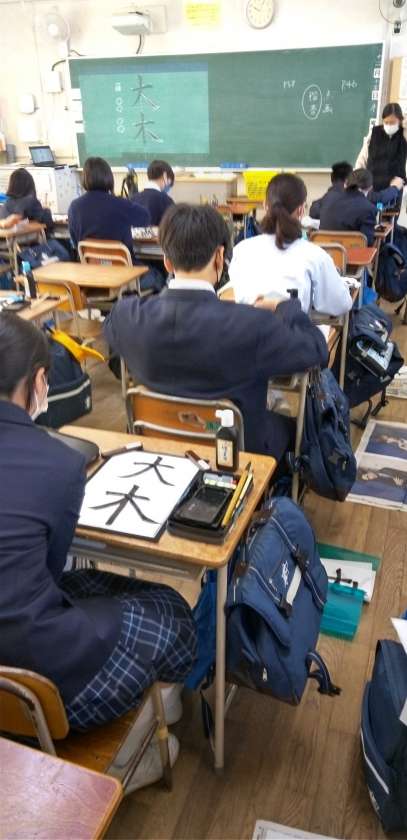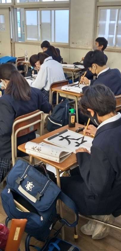 硯と筆を用いて、習字の学びを行っています。