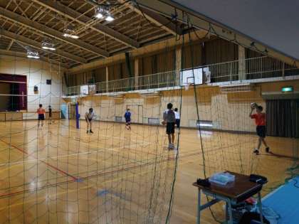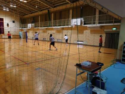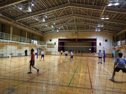 体育館では、男子バレーボール部が活動しています。