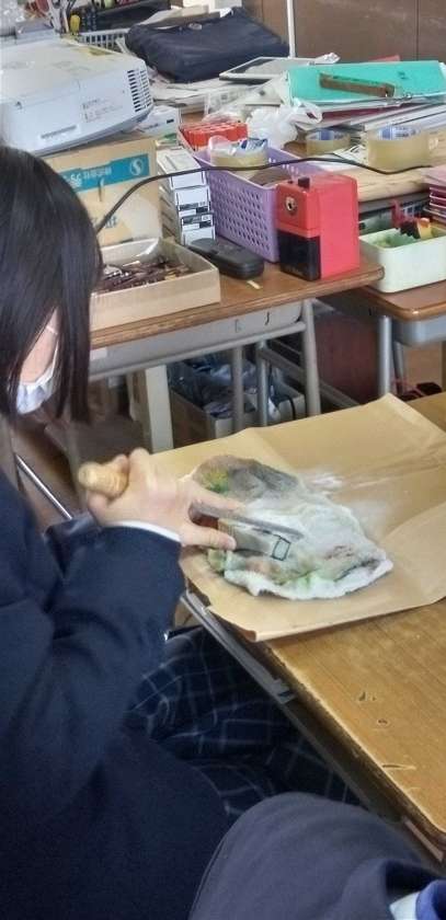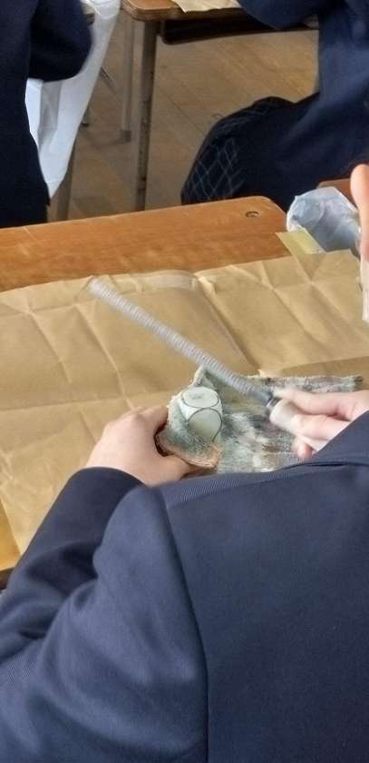 鉄やすりを持ちいて、石を削っていきます。