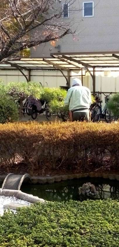 本日も松の葉の剪定作業。一つひとつ手作業で、美しくしてくださっています。感謝!