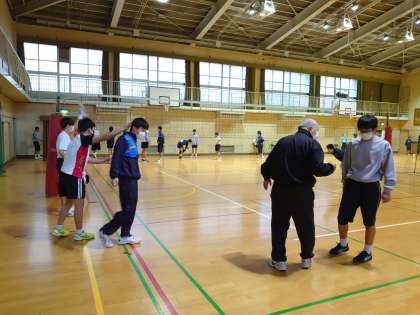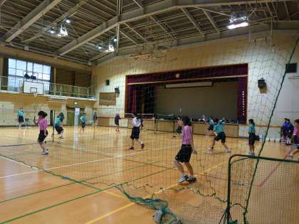 今日は、男子バレーボール部とバドミントン部が活動しています。