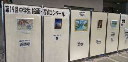 大阪市役所で開催されている、中学生の絵画・写真コンクール。