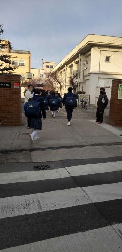 1年生と3年生は、元気に登校しています。
