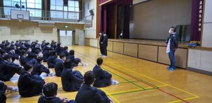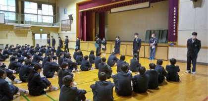 今朝は風紀チェックのあと、学級代表委員会から、今月の目標が報告されました。