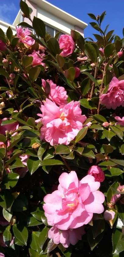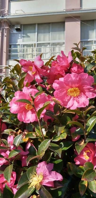 ようやく太陽が顔を出し、寒椿が輝き始めました!