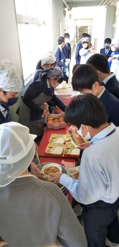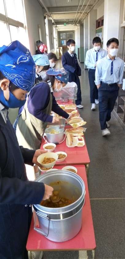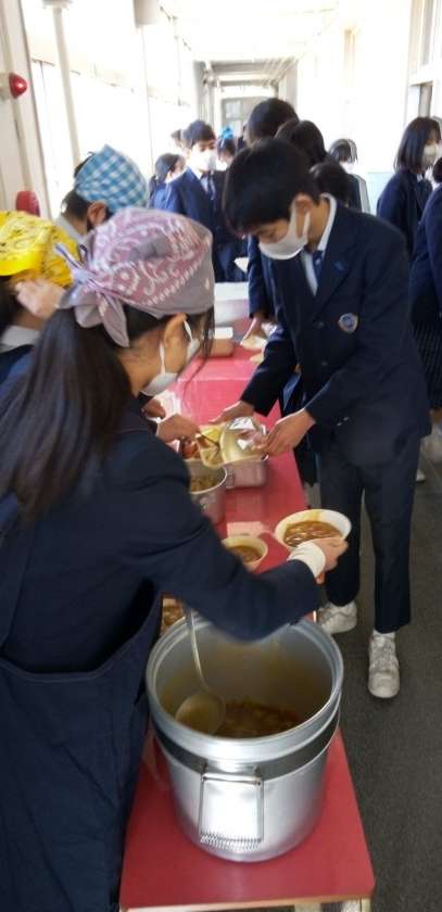 本日のメニューは、「ミートボールと野菜のカレー煮」「ツナとキャベツのソテー」「リンゴ」です。