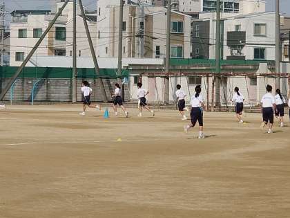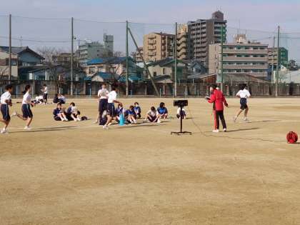 持久走に取り組んでいます。力強く走っています。持久走を通じて体力の向上を図っていきましょう。