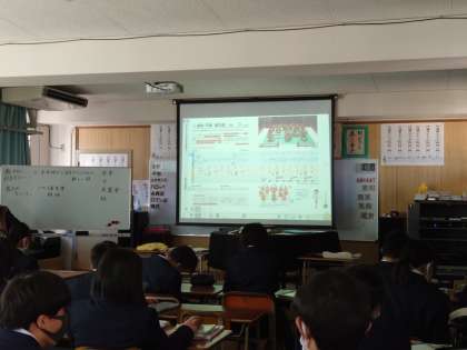 日本の古典音楽である「雅楽」について学習しています。ICT機器を積極的に使いながら、授業が進められています。