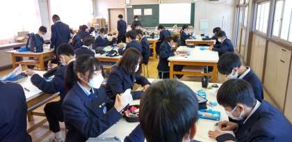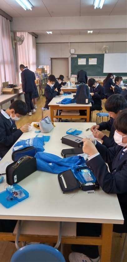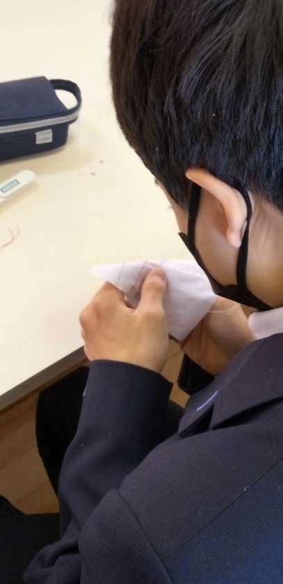 被服室では、並縫いの実習です。