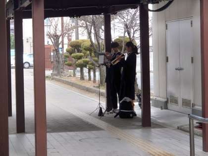 吹奏楽部は部員が多いので、様々な場所に分かれて個人練習を行っています。