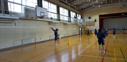 シュートの基本、レイアップシュートを練習しています。