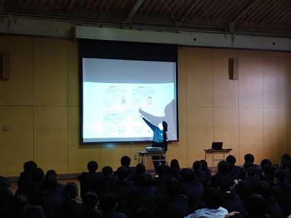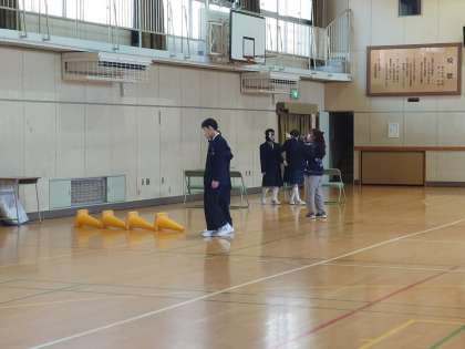 校舎内を車いすで回ったり、アイマスクをつけて障害物のあるところを歩いたり、それを介助しました。特に、介助する側は、相手の不安を取り除くための配慮が大切になります。相手の立場に立って物事を考えることができたのではないでしょうか。