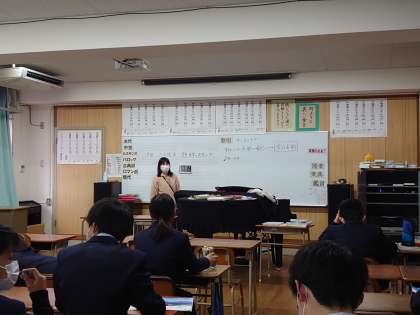 国語では、『大阿蘇』という文章について学習しています。本時のねらいは「眼前に展開する自然の姿を捉える」「創造豊かに朗読する」です。狙いを達成できるように授業に取り組みます。