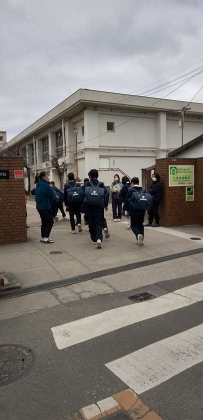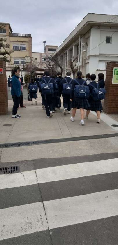 空模様はスッキリしませんが、生徒たちは晴れやかな表情で登校しています。