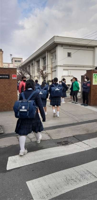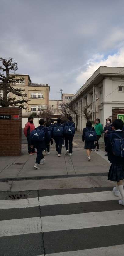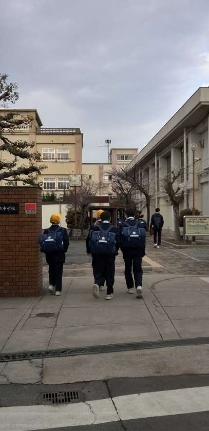 少し寒さがやわらいでいる中、生徒たちが登校して来ました。