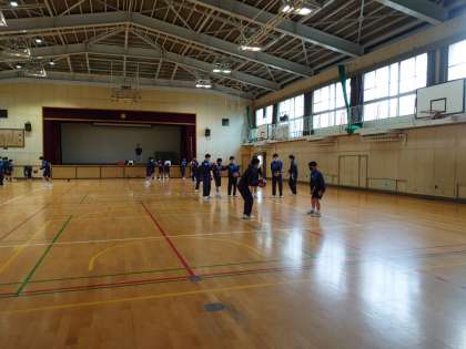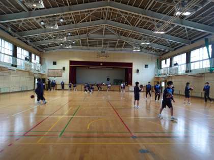 バスケットボールに取り組んでいます。ボールコントロールの力を高め、スペースを作り出すなどの動きを考えながらプレーします。そして、仲間と連携しゴールを目指します。