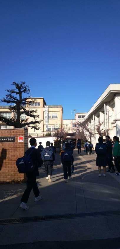 太陽が輝き始め、生徒たちが元気に登校して来ました。