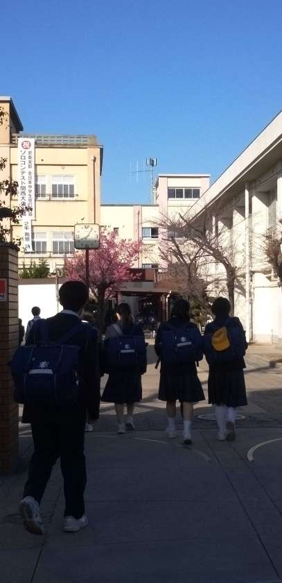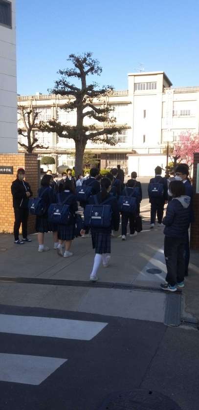 快晴の中、生徒たちが元気に登校してきました。