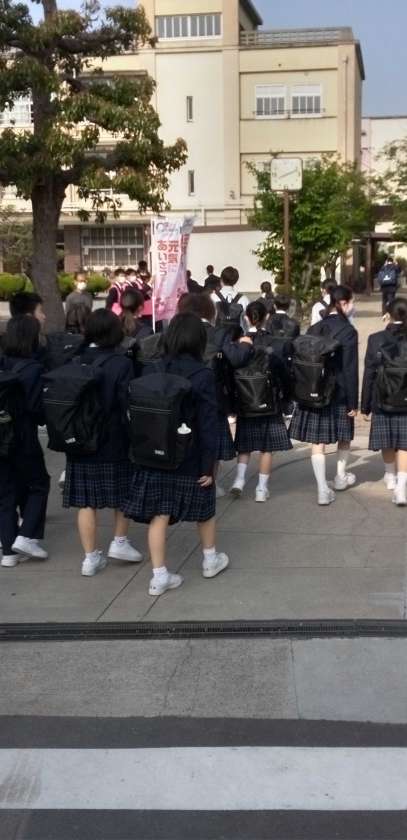 少し汗ばむ陽気の中、生徒たちが元気に登校して来ました。