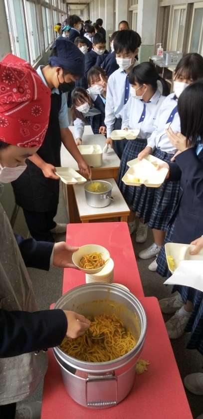 本日のメニューは、「カレースープスパゲッティー」「キャベツのピクルス」「ミニフィッシュ」です!