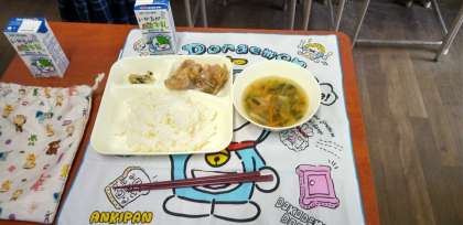 「野菜たっぷりの中華スープ」と「チンゲン菜ともやしの甘酢和え」も、しっかり食べましょう!