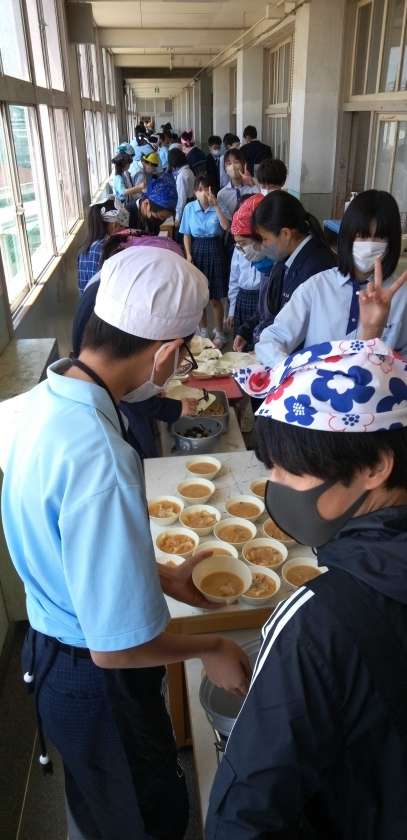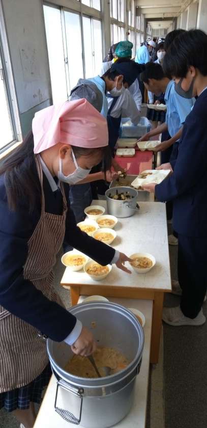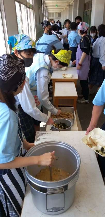 本日のメニューは、「竹の子とワカメの若竹煮」「野菜たっぷりの豚汁」「きびなごの天ぷら」です。