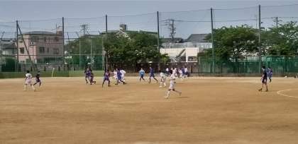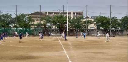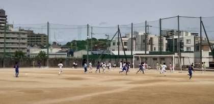 グラウンドでは、サッカー部の練習試合が繰り広げられています。