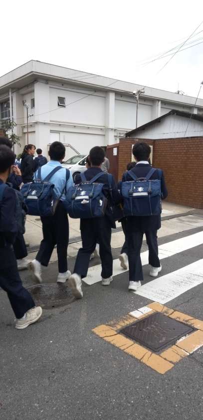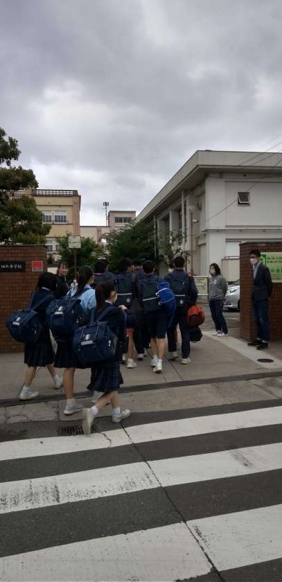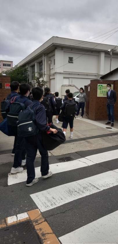 まだ曇り空ですが、生徒たちが元気に登校して来ました!